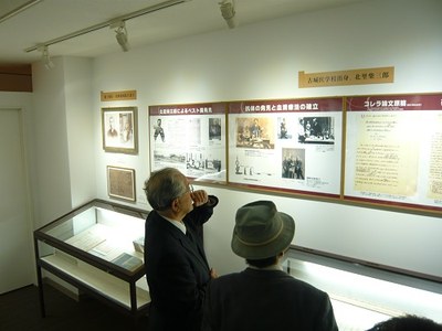 また、本年4月に設置された文書館では本学の歴史を振り返る写真や資料等を、パーティ会場では熊本地震による本学の建物や設備等の被害写真を展示しました。
